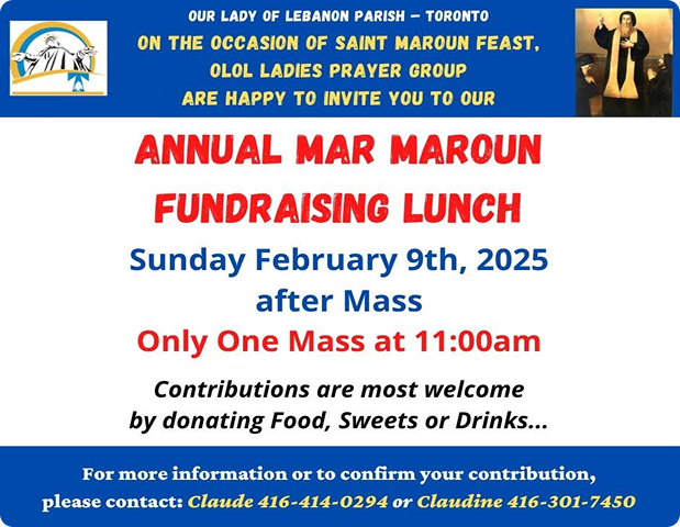 Sunday, February 9th, 2025 Feast of St. Maroun,  Lady of Lebanon church 11:00 am